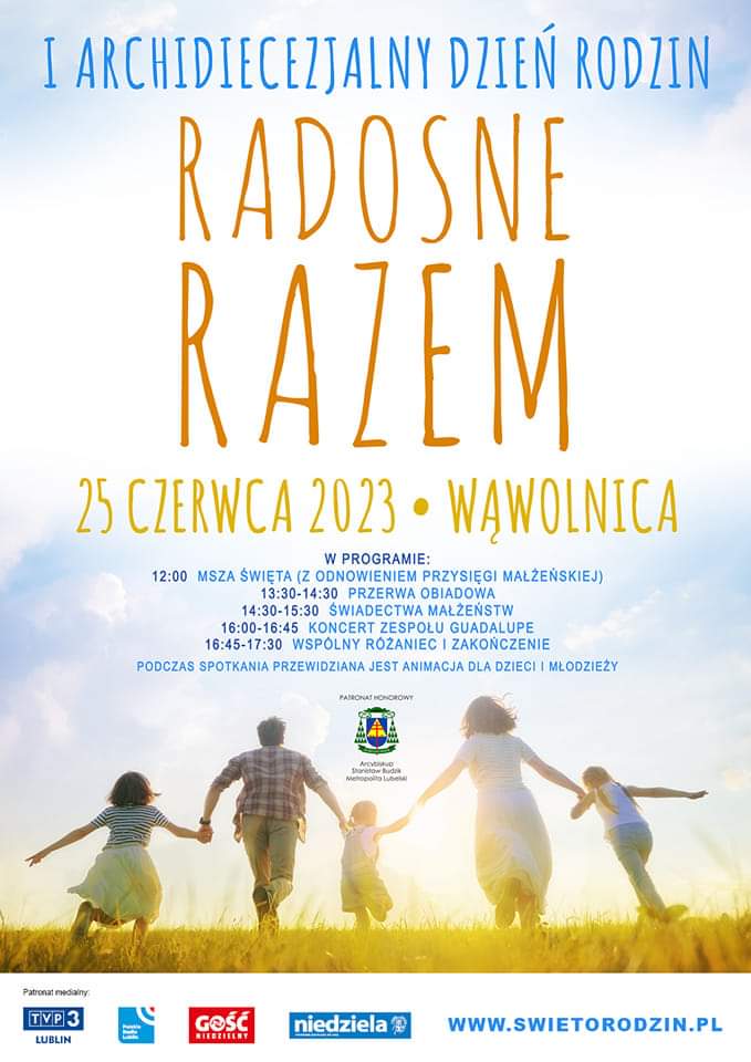 W imieniu Księdza Arcybiskupa zapraszamy wszystkie małżeństwa i rodziny na I Archidiecezjalny Dzień Rodziny, który odbędzie się w przyszłą niedzielę w Sanktuarium Matki Bożej Kębelskiej w Wąwolnicy.