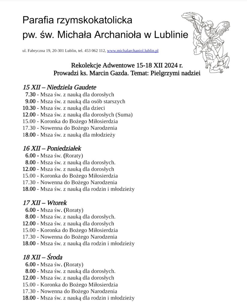 OGŁOSZENIA PARAFIALNE III NIEDZIELA ADWENTU GAUDETE 15.12.2024 r.